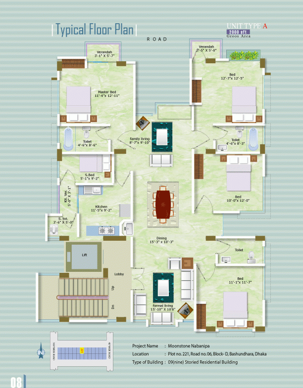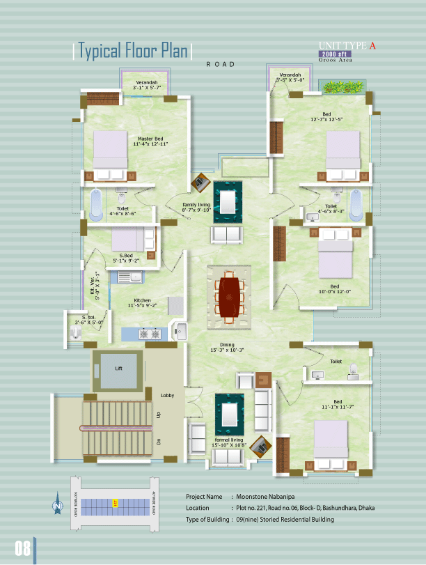 Project Name : Moonstone Nabanipa Location : Plot no.221, Road no.06, Block-D, Bashundhara, Dhaka Type of Building : 09(nine) Storied Residential Building